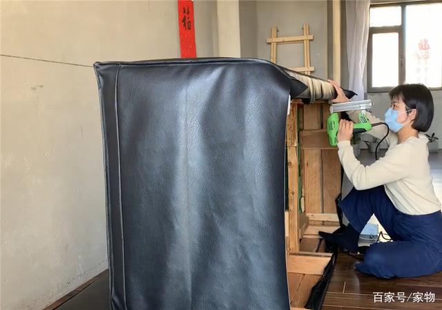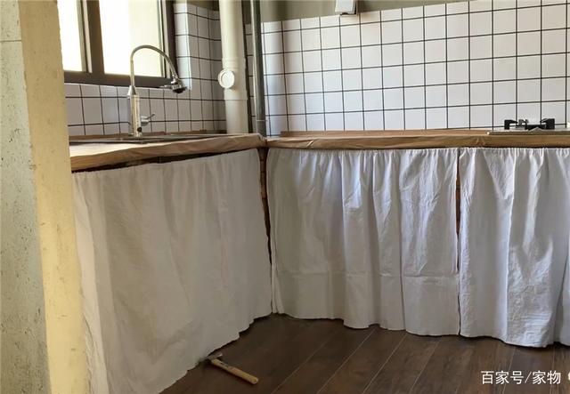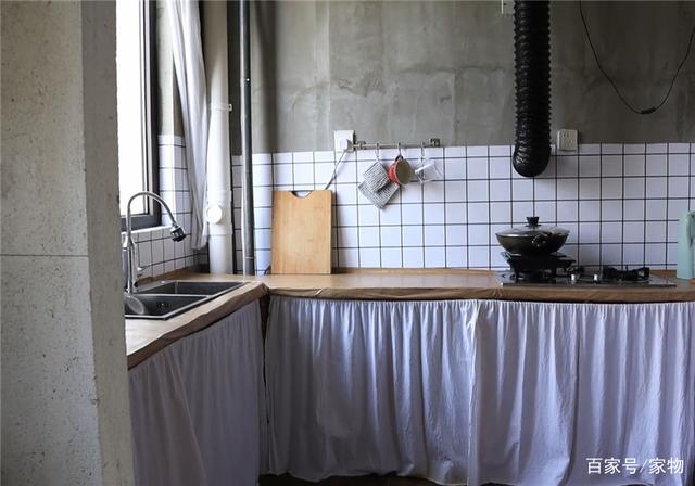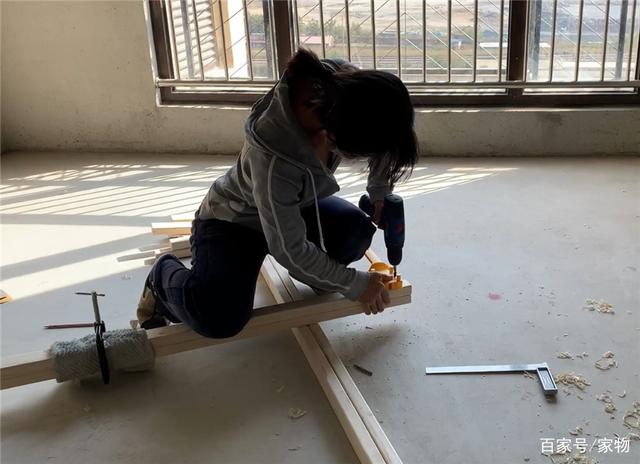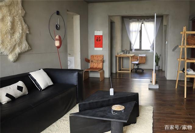 - 只有水电是请工人做好的,其他的姑娘打算就此自己亲自动手,把这间毛坯房变成自己喜欢的样子~ - 开始改造!  - 姑娘在开始改造前,就想好,所有的一切都要自己做,尤其是她最擅长的木工活儿!所以甚至就连梯子都是她自己用木材打造的。  - 做好梯子后,基本上房间里需要爬高的地方,都会用她自己做的这张梯子,她也想好了,当装修完毕后擦干净,也能当做摆件或者搭衣架使用,所以边缘都磨光磨平了,看上去还蛮精致。  - 地板为了节省预算,她买的是那种有瑕疵的,当然也要自己一步步来安装!这可费了大劲了,130㎡的空间一多半都要铺地板,用了好久才完活儿。  - 不过欣慰的是,铺贴出来的效果还算不错!  - 由于房东不让对墙面有过多的改造,所以她干脆选择了工业风的设计,只是对墙面进行了简单的清洁和上漆,看上去干净多了。  - 让人很佩服的是,客厅的沙发她也打算自己从头制作!她找来旧木架,将其简单安装成沙发的样子。  - 自己填充海绵、装订绑带之后,一张大沙发初具形态。  - 套上皮子后,用钉枪将其固定安装,你会发现一张黑色的皮质沙发就制作完成了!你别说,还真挺贴近工业风设计的。  - 一个简单的置物架,是姑娘利用旧木条和多余的地板,抛光后安装上去的,木工活儿做得倒是很规整。  - 看到姑娘正在安装饿滴墙面挂钟了吗?这是她自己买的钟芯,并且利用铁丝、塑料贴片等废旧材料上漆组成的,不仅省下了钱,还给空间内增添了几分艺术感。  - 至此,客厅的设计差不多就完成了,木头架、小电视图案的投影仪,以及各种绿植摆件,让这个原本冷冰冰的毛坯房显得生机勃勃。  - 纵览客厅,你能看到的小椅子、桌子、架子,都是姑娘自己手工制作的,是不是感觉超厉害?  - 这样简单的设计,不仅符合工业风的装修风格,同时也带来了更加舒适宜居的感受。个人超喜欢!  - 搞定客厅,其他地方也简单装饰一下——厨房用贴纸进行装饰,墙面、台面,贴上贴纸以后显得精致多了。  - 为了起到隐藏收纳的效果,姑娘还用小帘子遮盖住了架子。  - 总的来说,厨房装修后的效果还是不错的,虽然还是略微有些简陋,但也算是用最少的预算,实现了最强的效果!  - 令人感到惊奇的是,甚至连卫生间的洗手池,姑娘也是自己用废旧地板作为模具,用水泥填充制作的!十分规整。