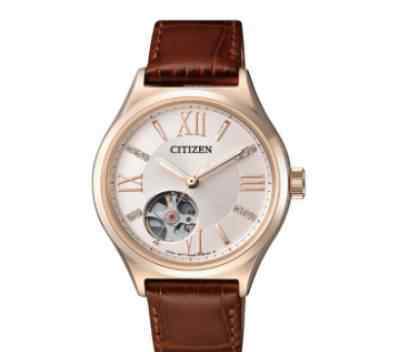 美丽的樱花装饰空系列简约自信,金粉色小牛皮表带表壳尽显优雅气质。