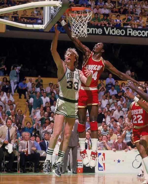 这里我们聚焦1986年。首先,奥拉朱旺在没有首发后卫约翰卢卡斯的情况下击败了由魔术师和贾巴尔率领的卫冕冠军湖人队,从而进入决赛。其次,他们在总决赛的对手,1986年的凯尔特人,被认为是历史上实力最强的球队之一。但如果回到1986年的总决赛,你会发现桑普森的表现惨淡,场均只有14.8分9.5个篮板,命中率43.8%。即便如此,我们还是要在他的数据旁边加个星号,因为第一局他只得了2分,第五局就被罚下了。如果不包括第五场的数据,去掉他在第三场的最佳表现,他的篮板会从10.8降到8,得分会从15.4降到13.2。