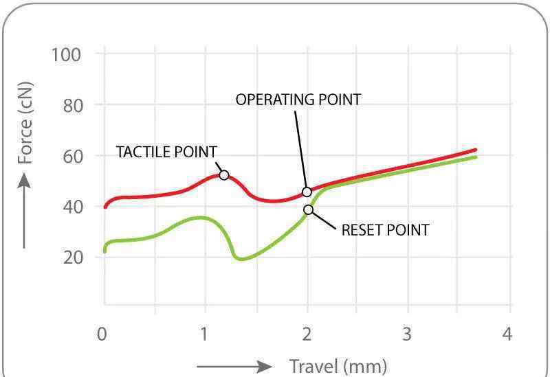 红轴是Cherry在2011年初推出的新轴。它的动作曲线和手感和黑轴差不多。敲击时没有段落感,触发键行程也是2.0mm,触发压力45cN。比较容易打击,可以兼顾游戏和打字的需要。红轴大师是传说中的一个品类,淡黑色,就是把茶轴或者绿轴的弹簧放在黑轴里面,保持黑轴的顺滑感。除了绿色轴,红色轴最适合长时间的文本输入。