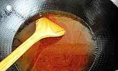 7 炒锅中少倒一些油放入火锅底料小火炒至。