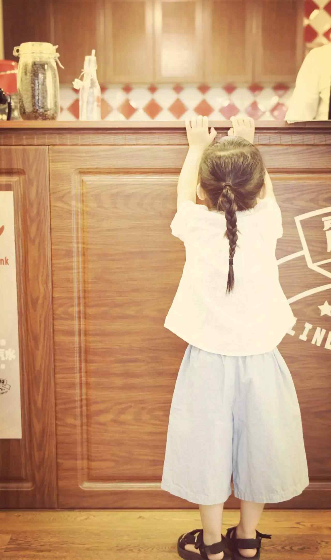 踮着脚拿着柜台,