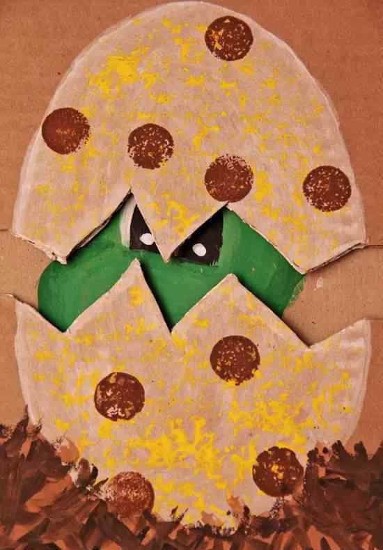 你也可以用彩纸或铆钉手工让一只小恐龙从壳里出来。
