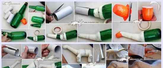 将塑料水瓶切成两部分,将纸管切成合适的长度,如图,用纸巾和胶水固定在接口处,将纸管与水瓶和酸奶盒连接,组装成恐龙形状,用锡箔纸做尾巴。),并用贴布块的方式做出头部轮廓的细节。最后用薄纸包裹全身后,即可上色。边肖认为这可能是手工业中价值最高的恐龙,所以赶快涂鸦吧!