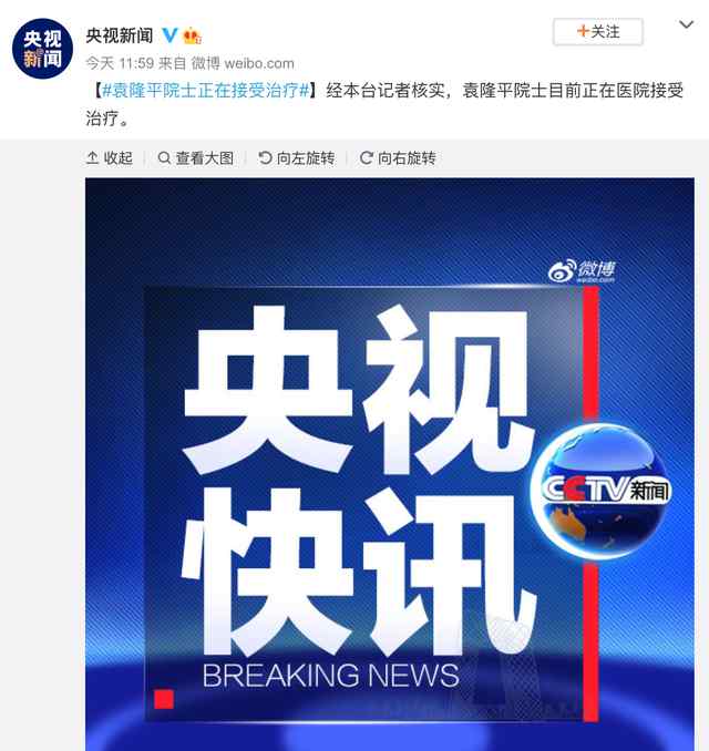 2.《央视发新闻证实:袁隆平院士正在医院接受治疗 到底什么情况呢?》仅供读者参考,本网站未对该内容进行证实,对其原创性、真实性、完整性、及时性不作任何保证。