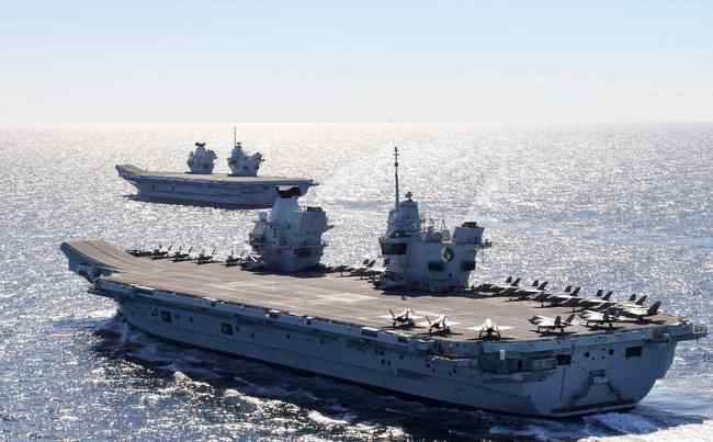 伊丽莎白航母是英国海军有史以来建造的最大一艘航母,造价30亿英镑,于2017年12月服役。本次出航的“伊丽莎白女王”号航母搭载了超过1700名人员,其中包括英国皇家海军官兵、皇家空军飞行员、皇家海军陆战队及250名美国陆战队员。在航空器方面,该航母配备了8架F35B战斗机及14架直升机。除却航母本身,航母战斗群还包括45型驱逐舰、23型护卫舰及补给舰在内的6艘水面和1艘攻击型核潜艇。