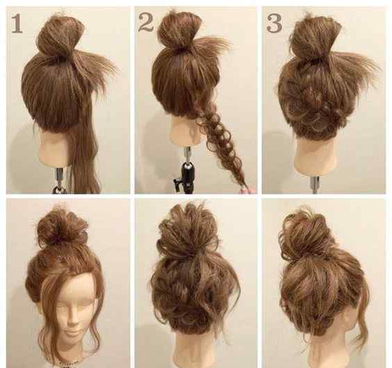 第三种类型的高球头需要先卷好再打结,在底部留一小绺头发,剩下的卷成球。最后把剩下的头发包在球的橡皮筋上,最后留一小段头发作为装饰。