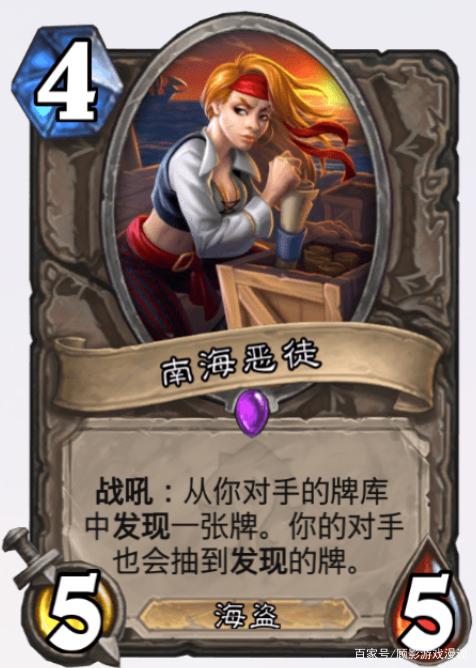 另一个则是非常脏的南海恶徒,本来从对手牌库里发现一张卡,并且对手也会抽到发现的这张卡,那么这个本来就算是一个“互惠互利”的随从。但是如果你手上有吃手手,那么是不是可以看做“提高吃掉某张卡”的概率?最夸张的是对面克苏恩合成好了,南海恶徒发现克苏恩,然后吃手手吃掉克苏恩,最后用偷到的对面的克苏恩斩杀对面。何止离谱,简直就是离谱。