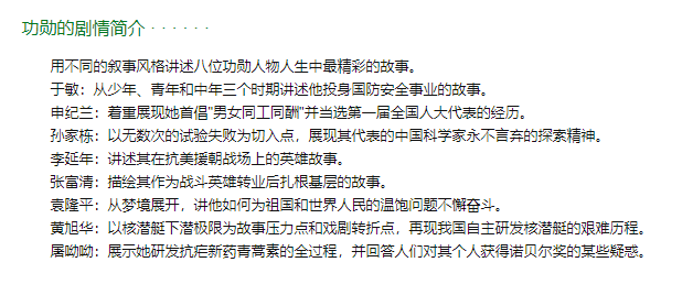 有网友在看到《功勋》的剧情简介之后被阵容惊艳,但是同时还不忘强调“说的不是演员和导演”,而是剧中的8位主角。