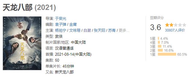 新版豆瓣3.6,一星占比高达六成,成了六个版本中评分最低的一版: