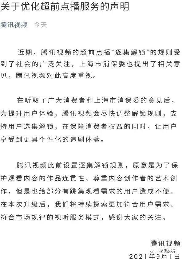 腾讯也是积极作出了回应,称:后续会积极优化超前点播服务。