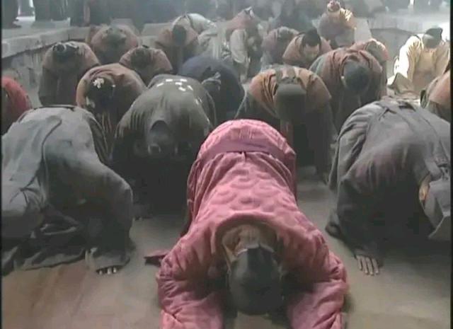 接受诏安旨意的时候,鲁智深武松等人不下跪,宋江回头的眼神充满威胁。而在下跪的众好汉当中,也只有宋江的屁股翘得很高,显得非常忠诚。