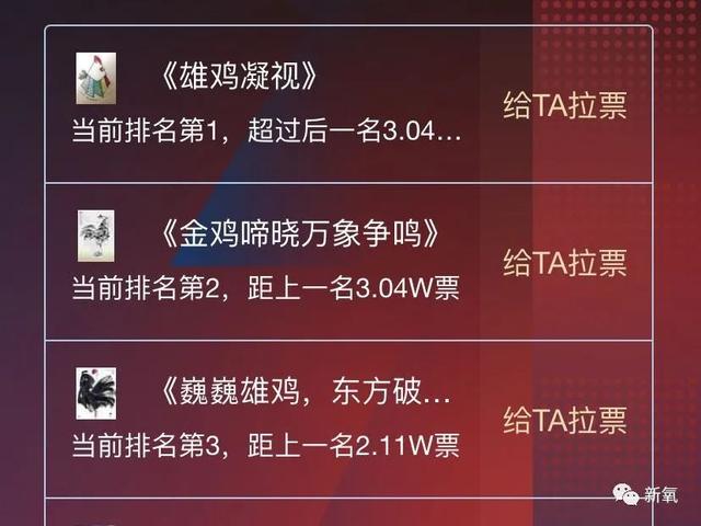 目前,《雄鸡凝视》暂列第34届中国电影金鸡奖海报设计大赛的第一名,紧跟其后的是《金鸡啼晓万象争鸣》和《巍巍雄鸡,东方破晓》。