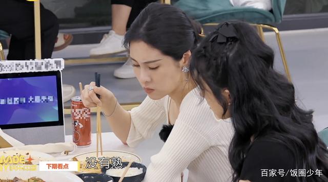 好不容易等到上菜了,赵丽颖吃了一口米粉,却发现没有熟。