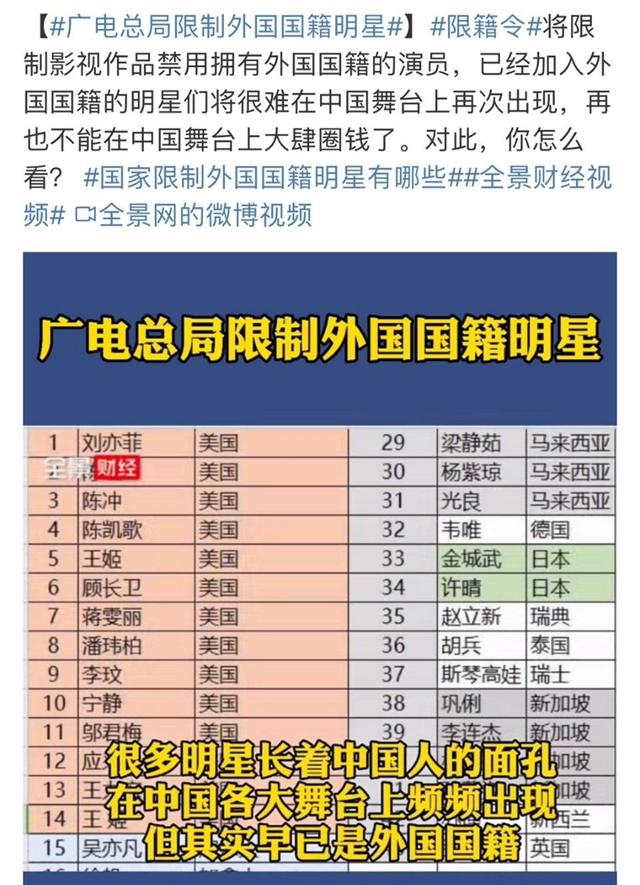 1.《“限籍令”出外籍明星难捞金,解释再多都是借口,国家面前无偶像》援引自互联网,旨在传递更多网络信息知识,仅代表作者本人观点,与本网站无关,侵删请联系页脚下方联系方式。