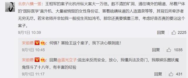 看到宋祖德要开始关注西藏冒险王王相军的案子时,也有网友给宋祖德善意提醒,称王相军的案子比杭州纵火案大一万倍。
