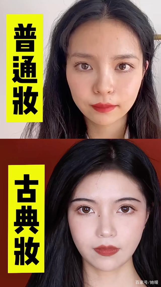 而且这种古典美不局限于穿古装,有的人把妆容加点古典感,也会显得更加精致贵气、娇艳欲滴。