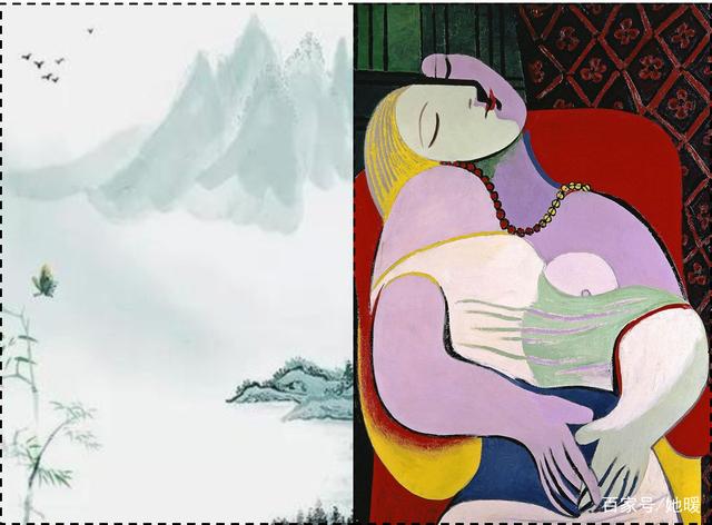 大家可以观察下古典水墨画的特征:色彩清淡、水墨交融、线条柔和,简单又耐看。而西方的油画更爱用比较张扬复杂的颜色。