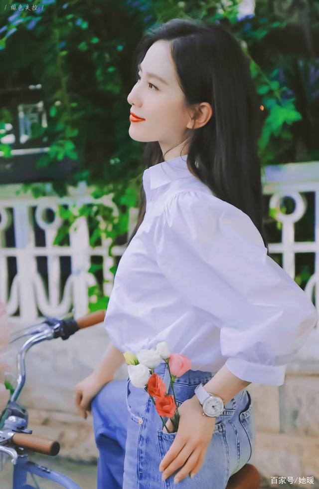 在发型上还是简单的长发最好看,温婉有致,这种含蓄大方气质让人百看不厌。