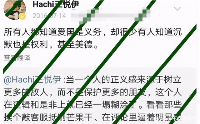现在作为明星的王悦伊,可能也意识到自己之前的言行欠妥,就把那些黑历史删得一干二净。可是她难道不知道互联网是有记忆的吗?说出去的话就像泼出去的水,怎么可能收回来?再说作为公众人物,本来就有无数双眼睛盯着。要怪就怪自己当初口无遮拦,大放厥词。