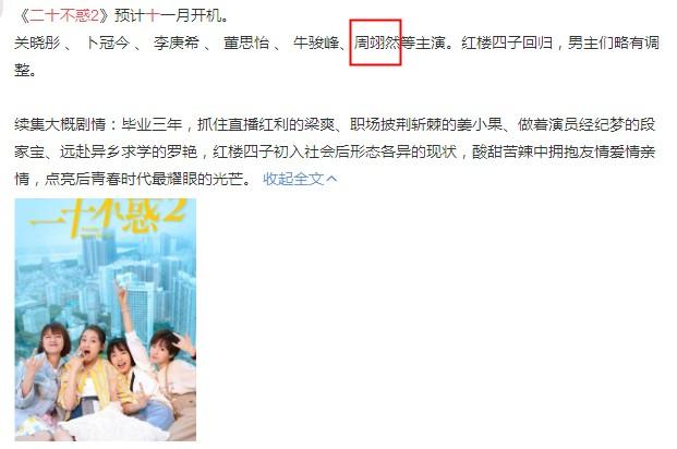 就在这段时间,网络传出关于《二十不惑2》的剧组新消息,主演阵容是原班人马,只是男主角们略有调整。另外续集中还增添了新晋人气鲜肉周翊然。