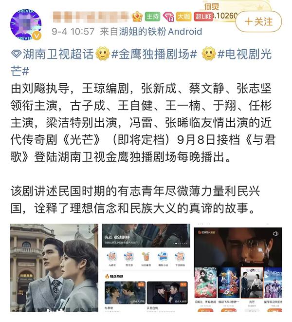 与此同时,湖南卫视超话某主持人也发布了相关播出资讯,确认了张新成蔡文静等人主演的电视剧《光芒》将在8日夜晚接档播出,证明了余生被撤档的事实。