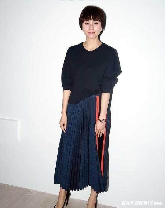 穿搭设计上:圆领上衣搭配一条中长款百褶裙,她本身比较的高挑,穿上之后非常的显瘦苗条,很是成熟干练。百褶裙的格子设计更突显出了她这个年龄的气质,优雅大方。