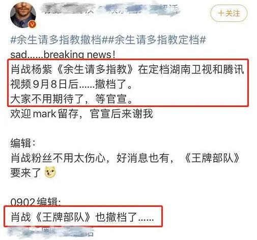 除此之外,肖战的另一部作品《王牌部队》也撤档了,肖战好不容易要出现了,竟然一下回到解放前。这两部剧都是很多人期待了很久的,因为这件事突然被撤档,粉丝们有苦说不出。