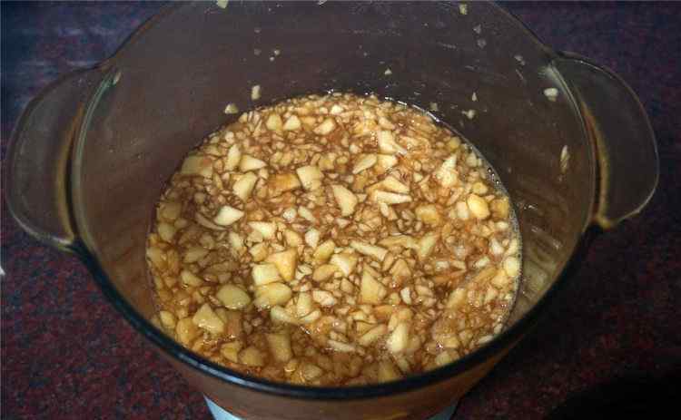 6 时间到,取出观察,冰糖融化后的糖水应盖过水果,如果尚未盖过,则适量加入清水,一般加入的清水不超过150毫升。我这里加入了150毫升。