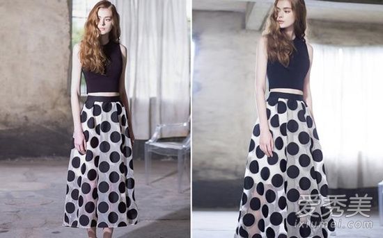 除了长裙,半身裙也是波点裙的主打款,担心自己hold不住大面积的波点,可以试试这款短款的样式,很多人都在问波点显不显瘦,和直筒款式相比,小编觉得鱼尾裙的要更显瘦一点呢,剪裁根据身形变化而变化,更能突出曲线感,唯一的bug可能就是腿短的妹子驾驭不了。