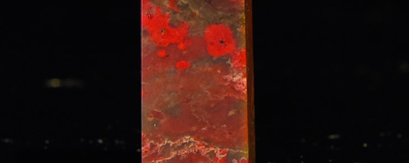 2.观察光泽。由于假鸡血石涂有树脂或502胶,可见光泽反射异常,尤其是在灯光下翻转时,而真鸡血石经过打蜡抛光,因此亮度柔和,蜡状光泽明显。