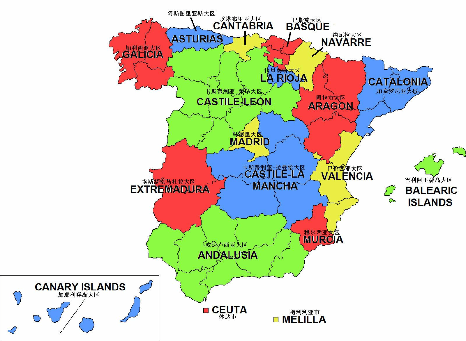 陆地面积504750平方公里。西班牙分为17个自治区,50个省,8000多个城镇。首都马德里是全国的政治、文化、经济和金融中心。它南北长840公里,东西长1000公里。
