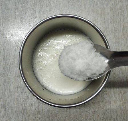 加入适量白糖,小火煮至牛奶微开,白糖融化。(白糖的量依据自己的喜好而定,不建议加太多,但如果不加,酸奶会不够甜度)