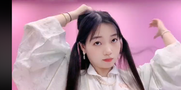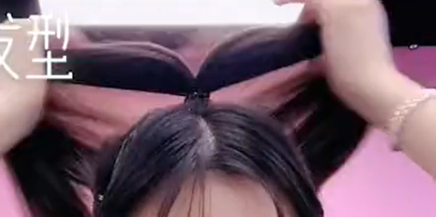 - 再将没捆绑的头发套在刚才捆绑的头发上,往下一拉。