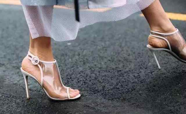 透明凉鞋最大的优点就是和皮肤融为一体,无形中拉长了腿部线条。