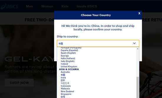 而进入中国亚瑟官网,用户选择地址时,标题是“选择你的位置和语言”,没有提到国家这个词。列表显示中国香港和中国台湾,中文为中国。