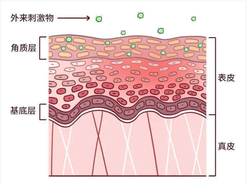 外部刺激物穿过角质层,引起炎症