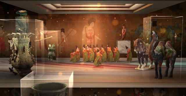 河南春晚《唐宫夜宴》节目以夜宴的乐师们为主角,展示了唐朝少女们从准备、整理妆容到夜宴演奏的过程。节目穿插妇好鸮尊、莲鹤方壶、贾湖骨笛、《簪花仕女图》等国宝,像是“唐朝少女的博物馆奇妙夜之旅”。