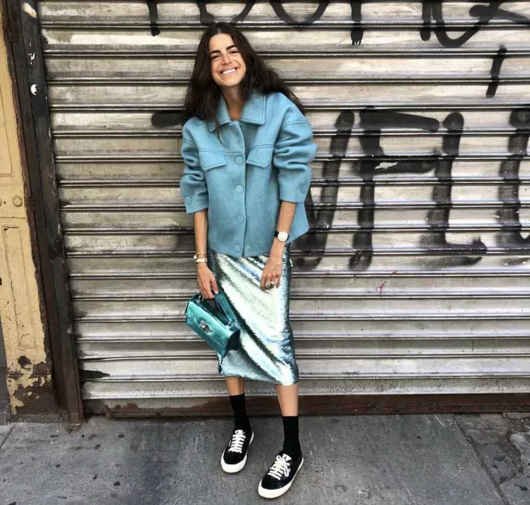 宽松的裙子和运动鞋、袜子混在一起。这种帅气性感的风格最迷人!
