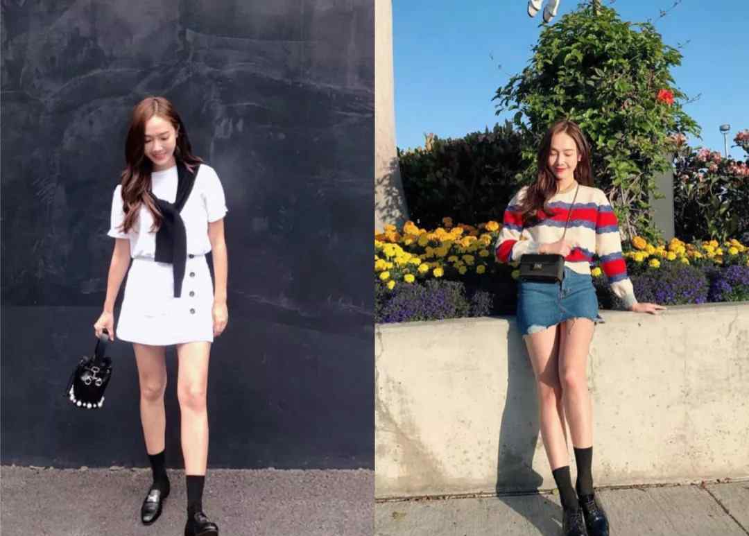 杰西卡在简单的t恤或套衫下穿了一条短裙,一双牛津鞋搭配黑色小袜子,充满了浓郁的英式复古风格。
