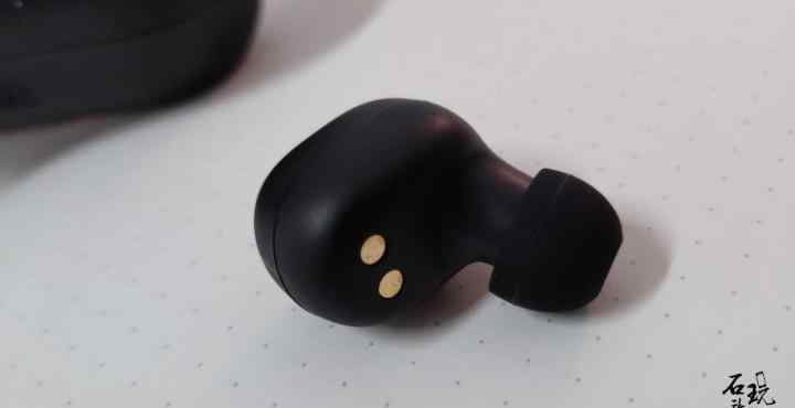 从QCT1青春版耳机的细节来看,金属充电触点在耳机的内侧。当放置在充电座中时,金属触点可以通过接触充电座中的触点来充电;耳机表面是多功能按键,麦克风和LED灯有两个小孔。