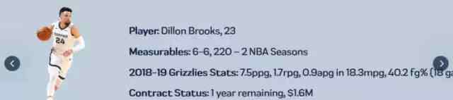 另一位侧翼狄龙-布鲁克斯还在寻找方向,他在NBA的第二个赛季接受脚趾手术之前能够胜任得分后卫和小前锋两个位置。灰熊队给了他足够的重视,在交易截止日之前留下了他,同时下赛季拥有球队选项能让他继续留在球队。而同样是锋卫摇摆人的贾斯廷-霍勒迪,下赛季将成为自由球员。