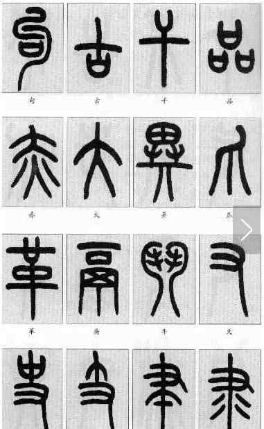 经过甲骨文、金文、大篆的演变,在象形文字上既有保留,又有突破,所以是一种难记的字体。现在,小印章的部首总结如下: