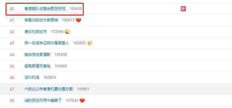 此外,红星新闻记者了解到,截至目前,话题#香港警队世警会男足夺冠#在微博上已创下136.8万的阅读量,而且登上了微博热搜榜。另外,红星新闻记者了解到,截至目前,微博上#香港警察世界警察协会为男足夺冠#的话题已达到136.8万条阅读量,并已被列入微博热搜名单。