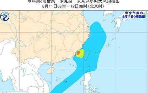 大风预报:11日08时至12日08时 ,南海东北部和南部、巴士海峡、台湾海峡、台湾以东洋面、东海大部以及台湾岛沿海、福建沿海、浙江沿海将有6-7级大风,其中福建中南部沿海、台湾海峡南部将有8-10级大风,“米克拉”中心经过的附近海域或地区的风力有11-12级,阵风可达13-14级。