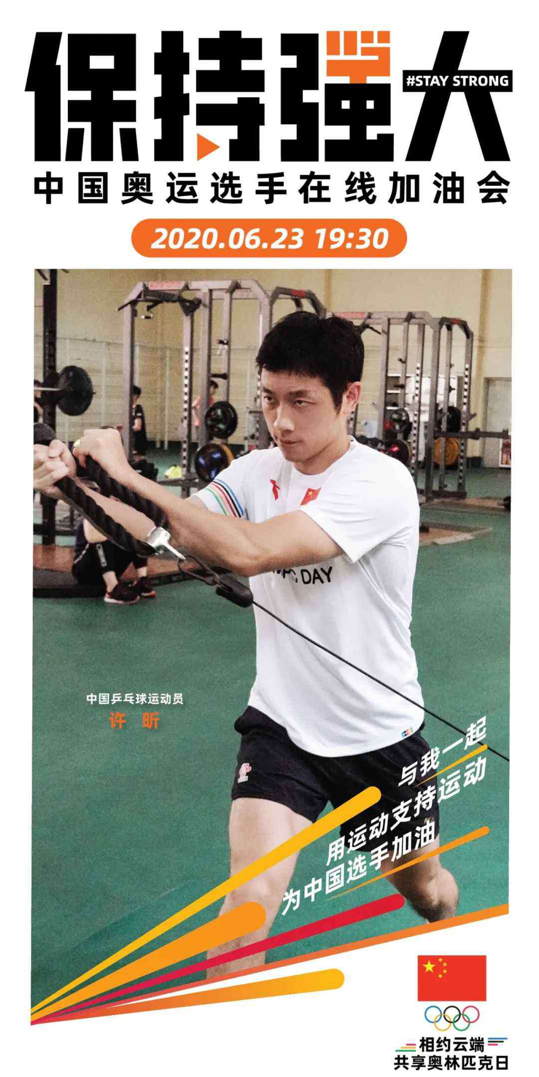面对国际奥委会的号召,中国奥委会做出积极响应,决定举办以「保持强大」为主题的中国奥运选手在线加油会,并在奥林匹克日当天首次开启云端模式,以线上平台集中展示、线下群众自发参与的方式进行。