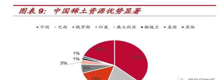 1)中国稀土资源优势明显:储量居世界第一。美国地质勘探局数据显示,全球基础稀土储量1.2亿吨,储量依次为中国、巴西、俄罗斯、印度、澳大利亚,其中中国占37%,产品达到90%以上。它有能力大量供应不同类型的稀土产品,被称为“稀土王国”。如此丰富的稀土资源,在原料资源上为下游稀土永磁材料产业的发展奠定了坚实的基础;