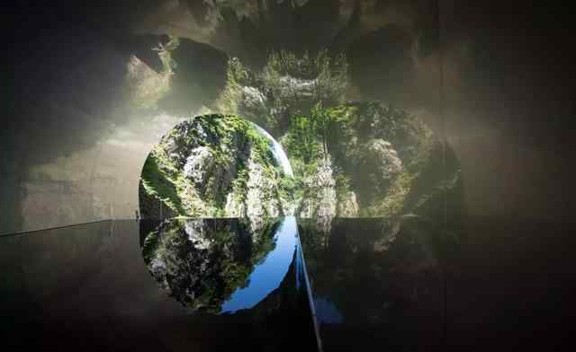 两者之间的空缝隙,揭示了隐藏在作品下的石头花园,展现了插花的色彩和轮廓,产生了万花筒般的视觉效果。