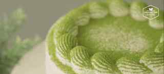 绿色的抹茶覆盖在蛋糕上,白色的奶油透露出嫩绿色。