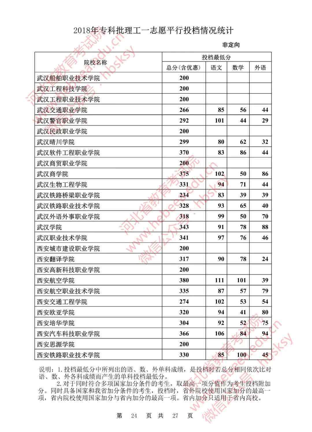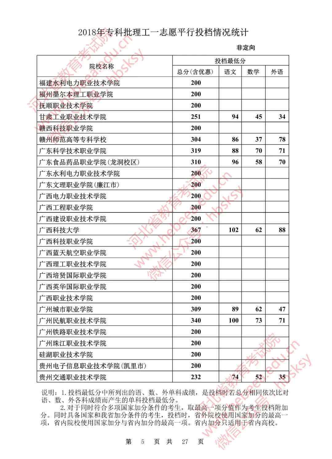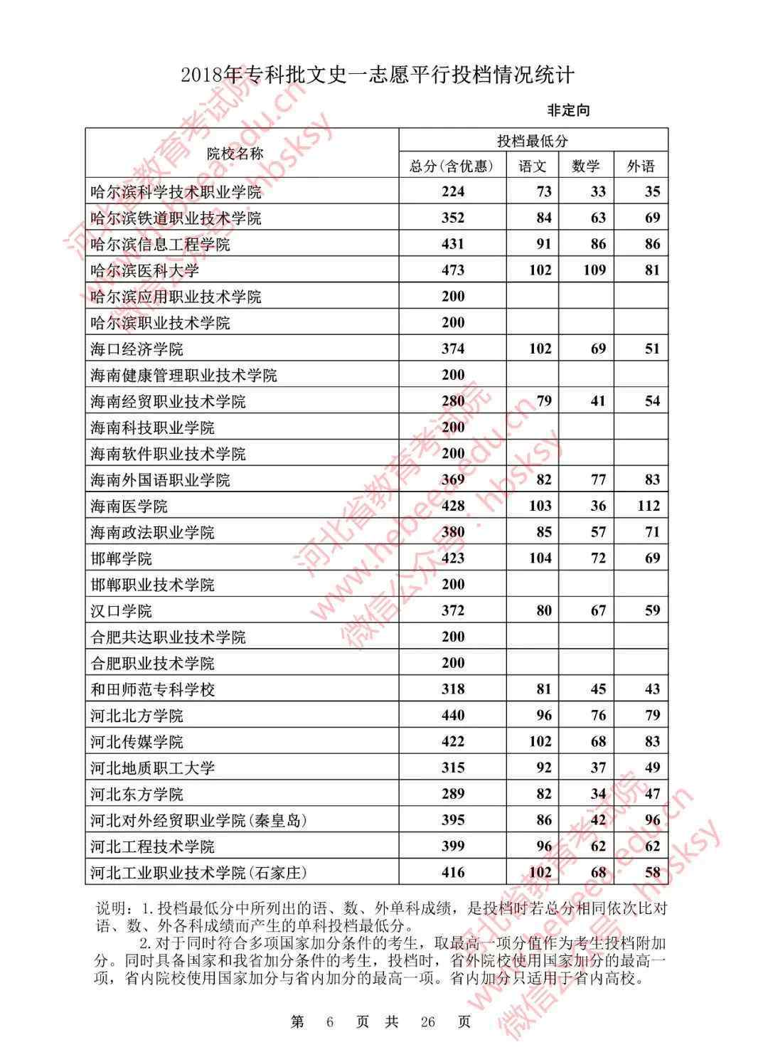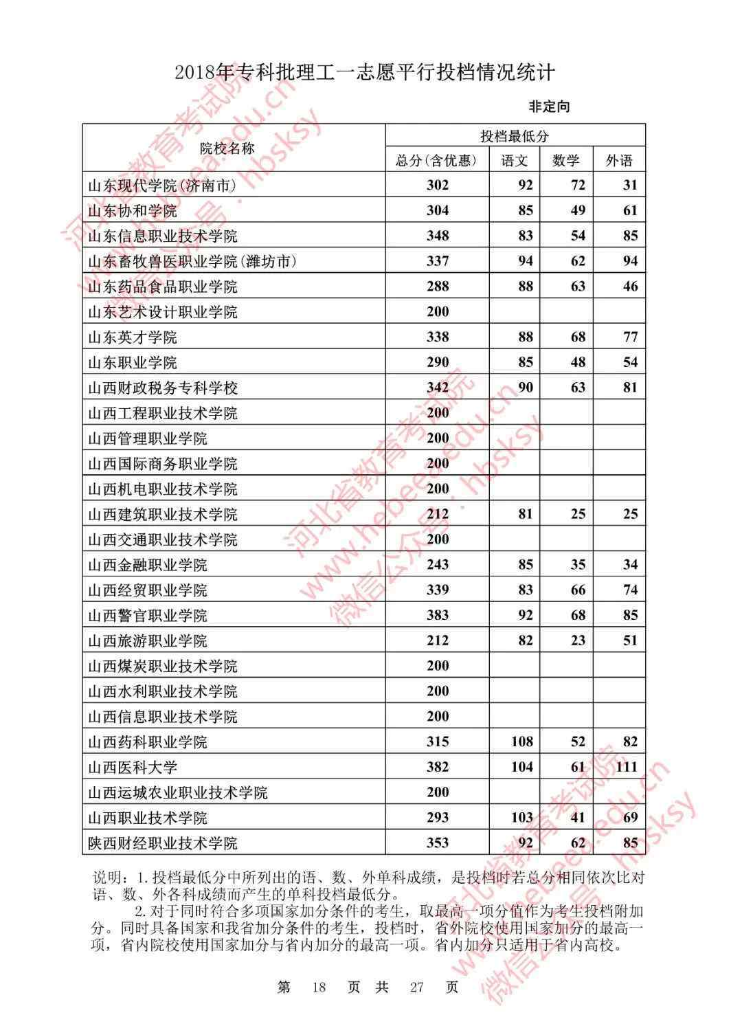 2018年,河北专业户批准了自愿平行备案分数线:
